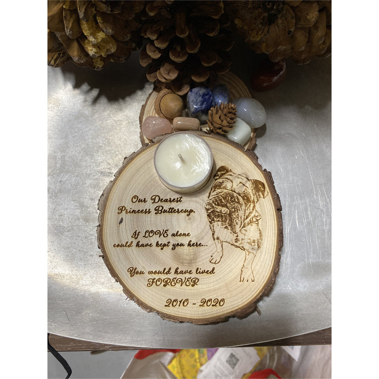 Your photo or artwork of your beloved furry animal family member will be converted into a laser engraved memorial that you can cherish for years and years to come!